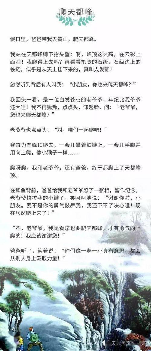 爬天都峰朗读视频不仅是一个励志故事,更是一个充满正能量的传播。它让我们看到了一个孩子在逆境中成长,用自己的努力去追求梦想。这个视频让我们明白,只要有梦想,有毅力,就一定能够实现自己的目标。让我们一起为小明加油,期待他未来更加精彩的篇章!