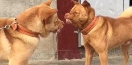 3. 和解阶段:在经过一番激烈的打斗后,两只土狗似乎都累了,它们开始互相舔对方的脸,仿佛在说:“好了,我们不打架了,以后还是好朋友。”